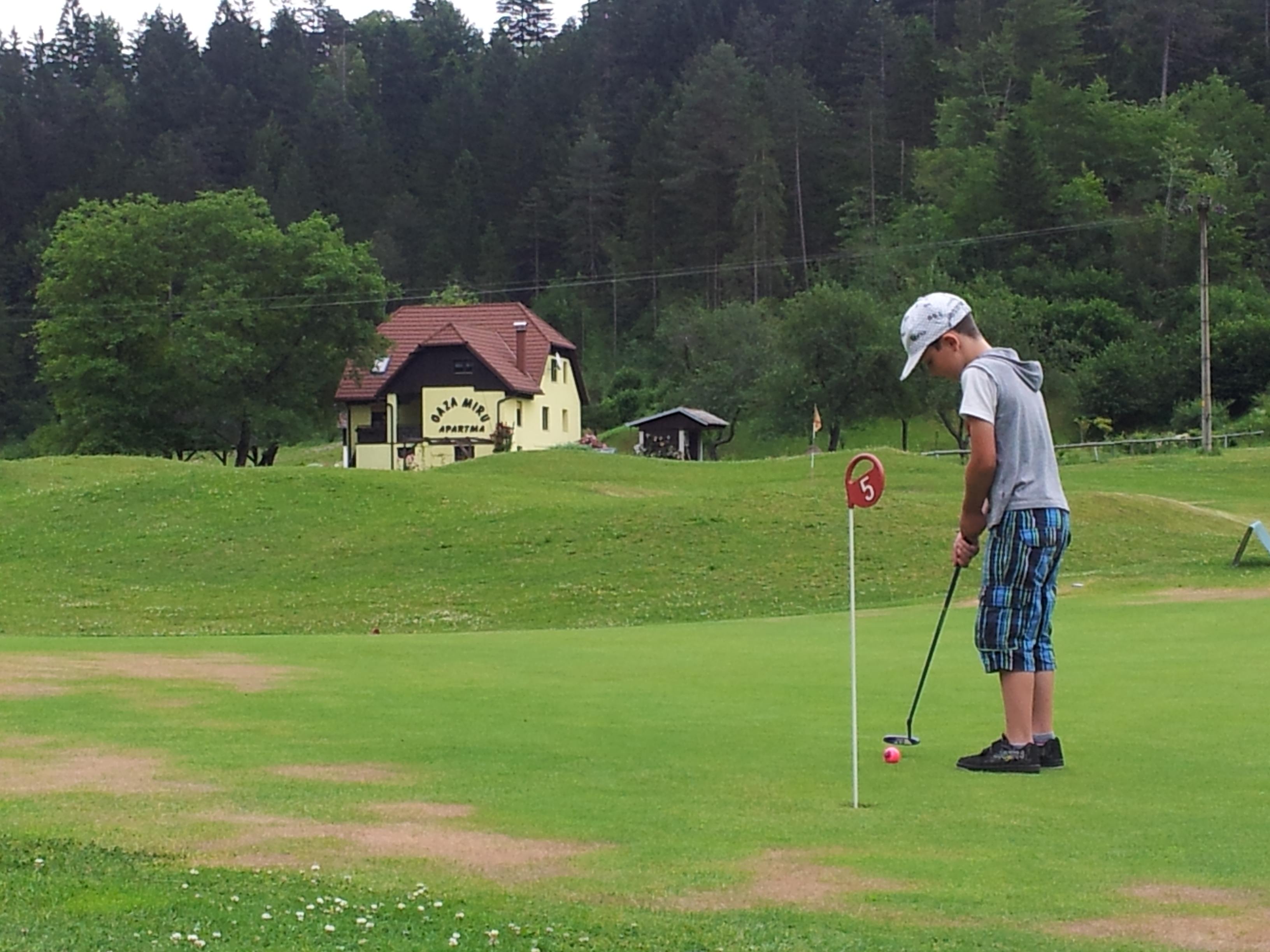 We appeard to be on a golf course. Once in your life time all your family can try this game for free! The owner of the house will be more than happy to show you how to hit you first ball. (on a driving range)